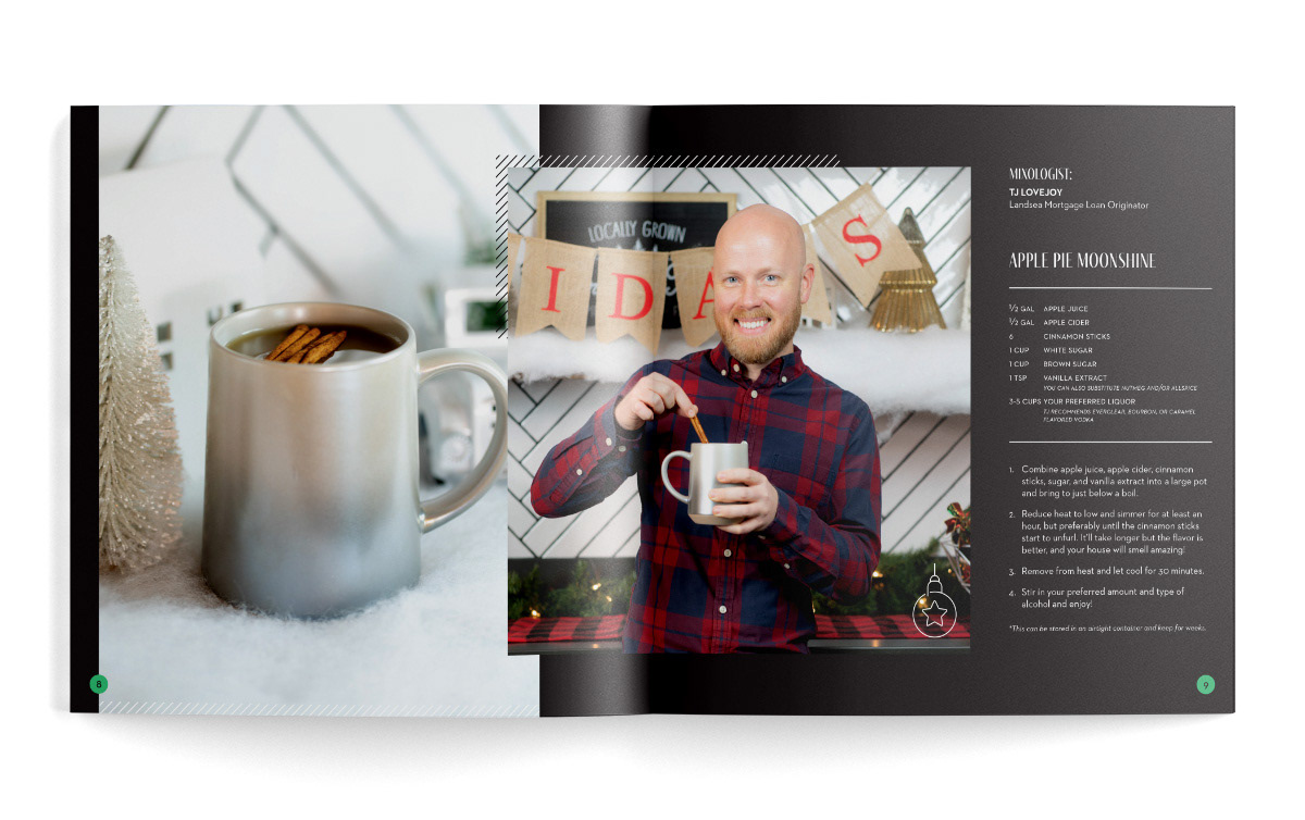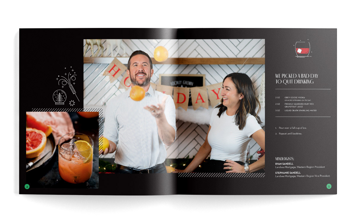 Instead of a standard holiday gift, I led the creation of a custom Holiday Cocktail book featuring signature drinks crafted by our own team members. The piece was designed to feel elevated and gift-worthy, with full-page photography and a polished, high-end aesthetic.